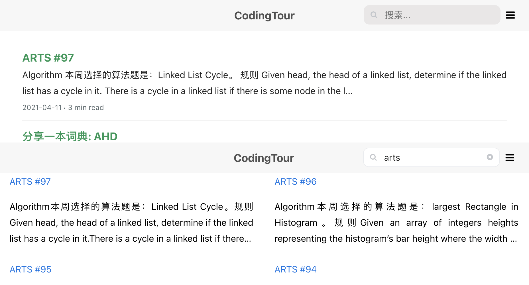 相比 Simple-Jekyll-Search 提供的默认功能,我做了两处更新: