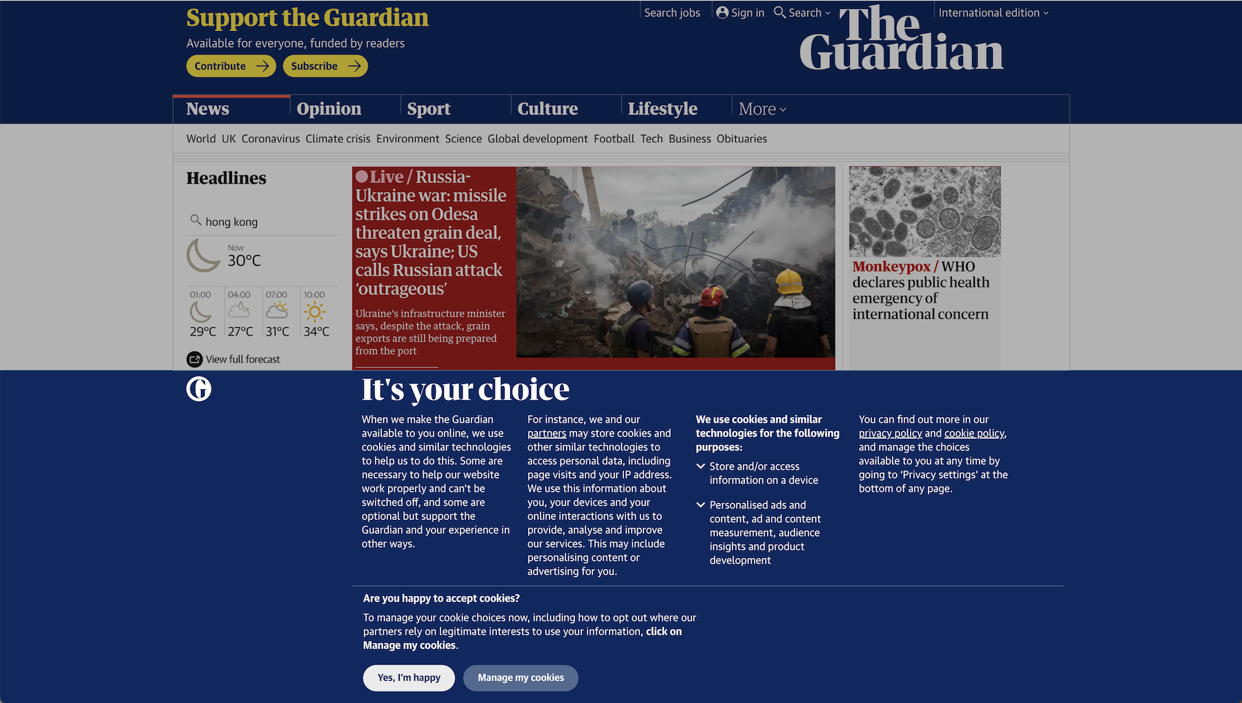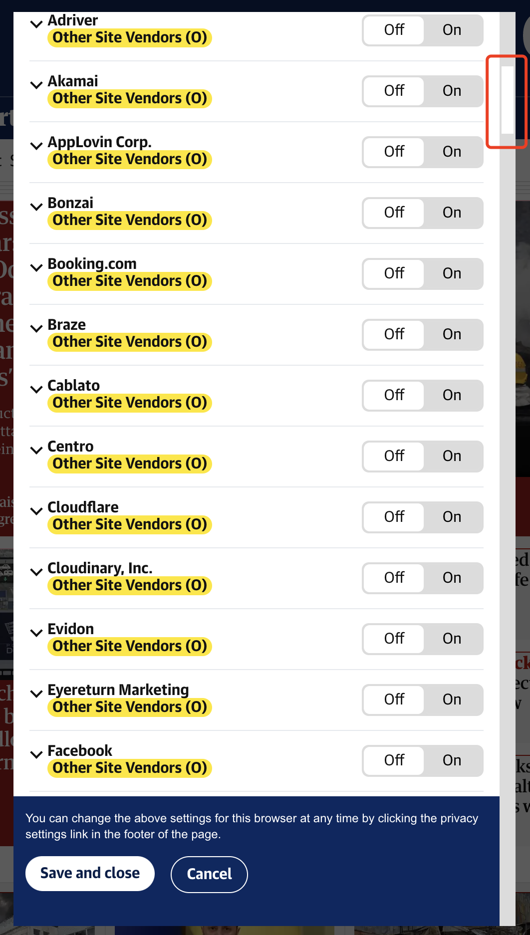 以往看到的应用,关于 Cookie 这块儿最多只呈现一个非常 tiny 的提示窗口,而 The Guardian 非常诚实的告诉用户 “我们或用或卖你所有的个人数据给我们的合作伙伴”,它的合作伙伴可不少: