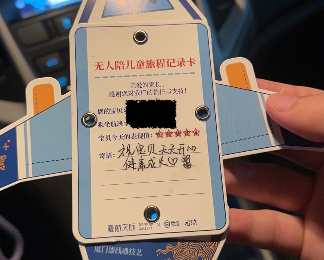 小朋友暑假结束,前几天自己一个人坐飞机回到了厦门,本来是试探性地问她敢不敢自己坐飞机回来,没想到真的敢!