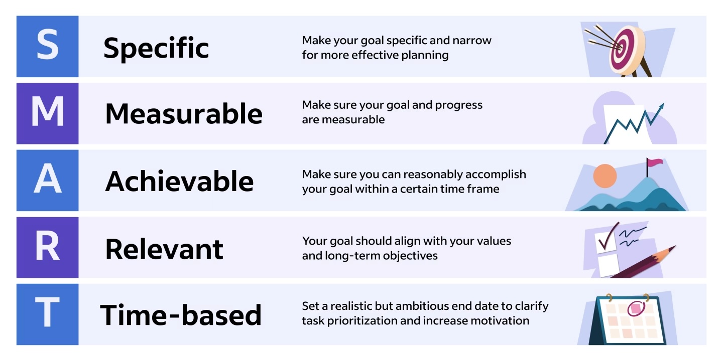 在接受老板布置的工作之前,一定要明确交付标准。具体来说,就是要对齐这项工作要达到的效果是什么,可以用 SMART 原则来确保目标具体、可衡量、可实现,以它的限制条件,比如时间期限。