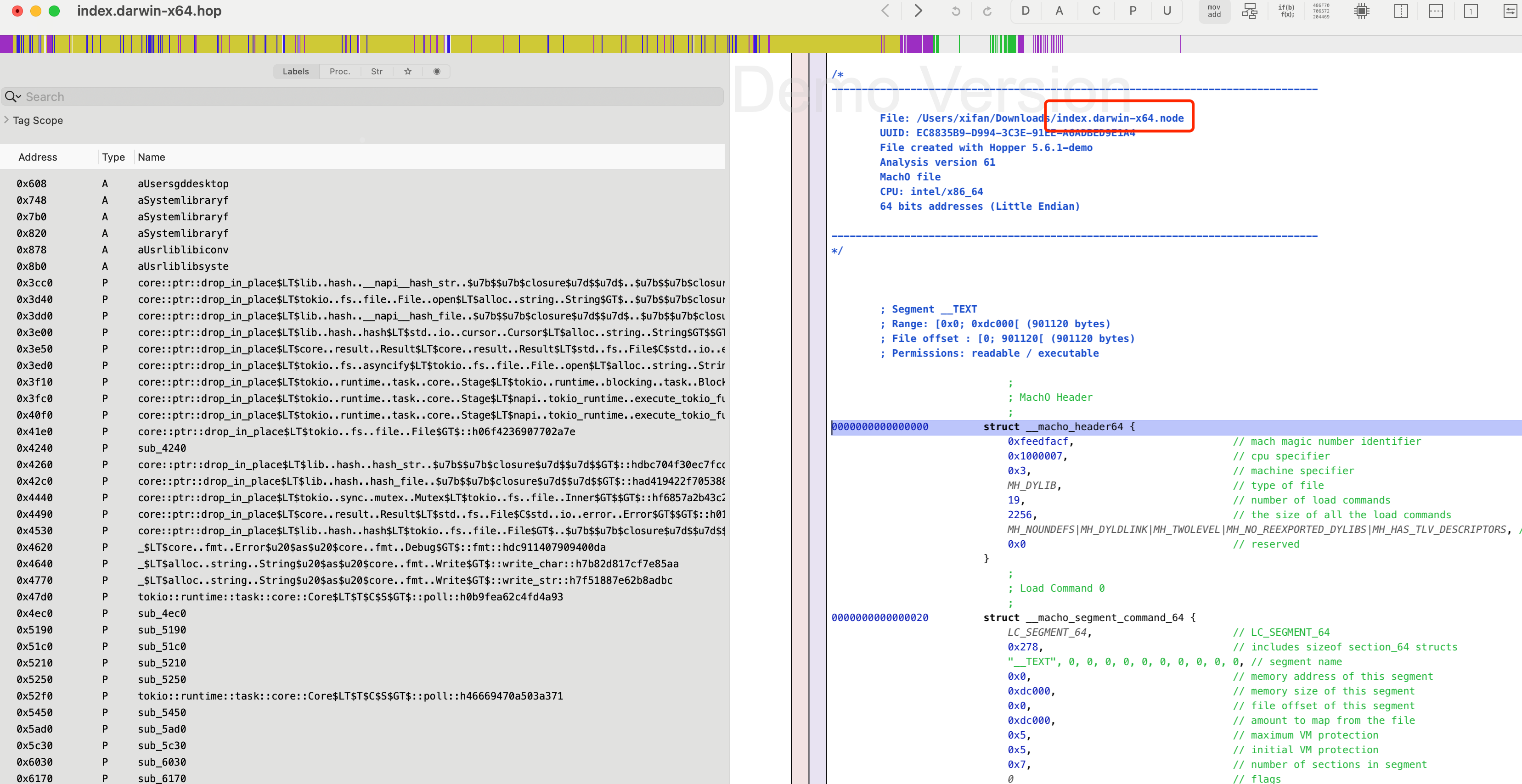 .node 文件的原理,虽然它的后缀是 .node,但实际上是原生平台的构建产物,比如在 macOS 上是 Mach-O: