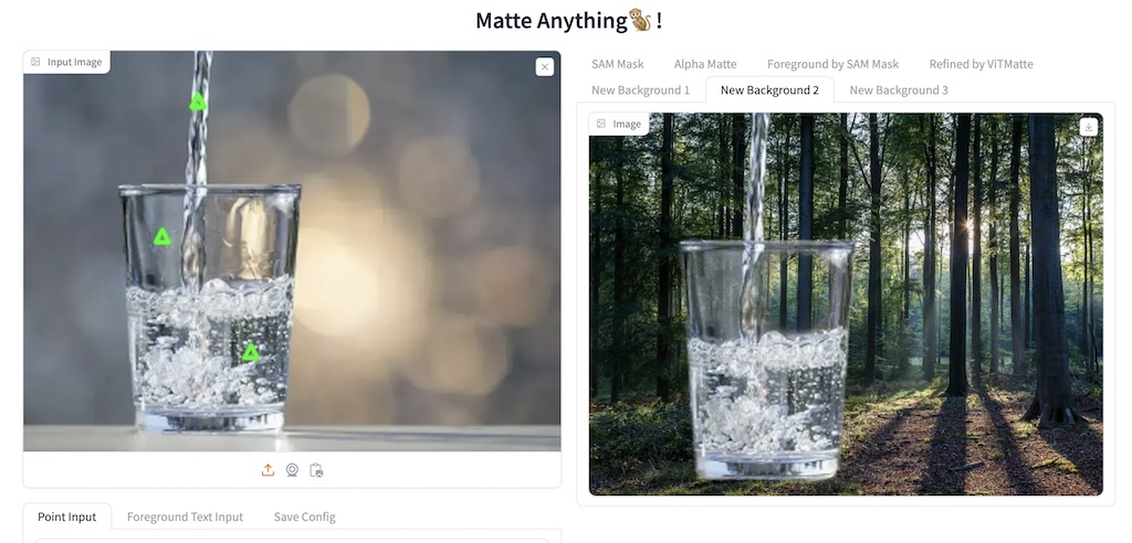主要思路是,首先通过 SAM 根据用户输入对图片进行分割并生成 trimap,然后用 trimap 引导 VitMatte 进行 alpha matting。