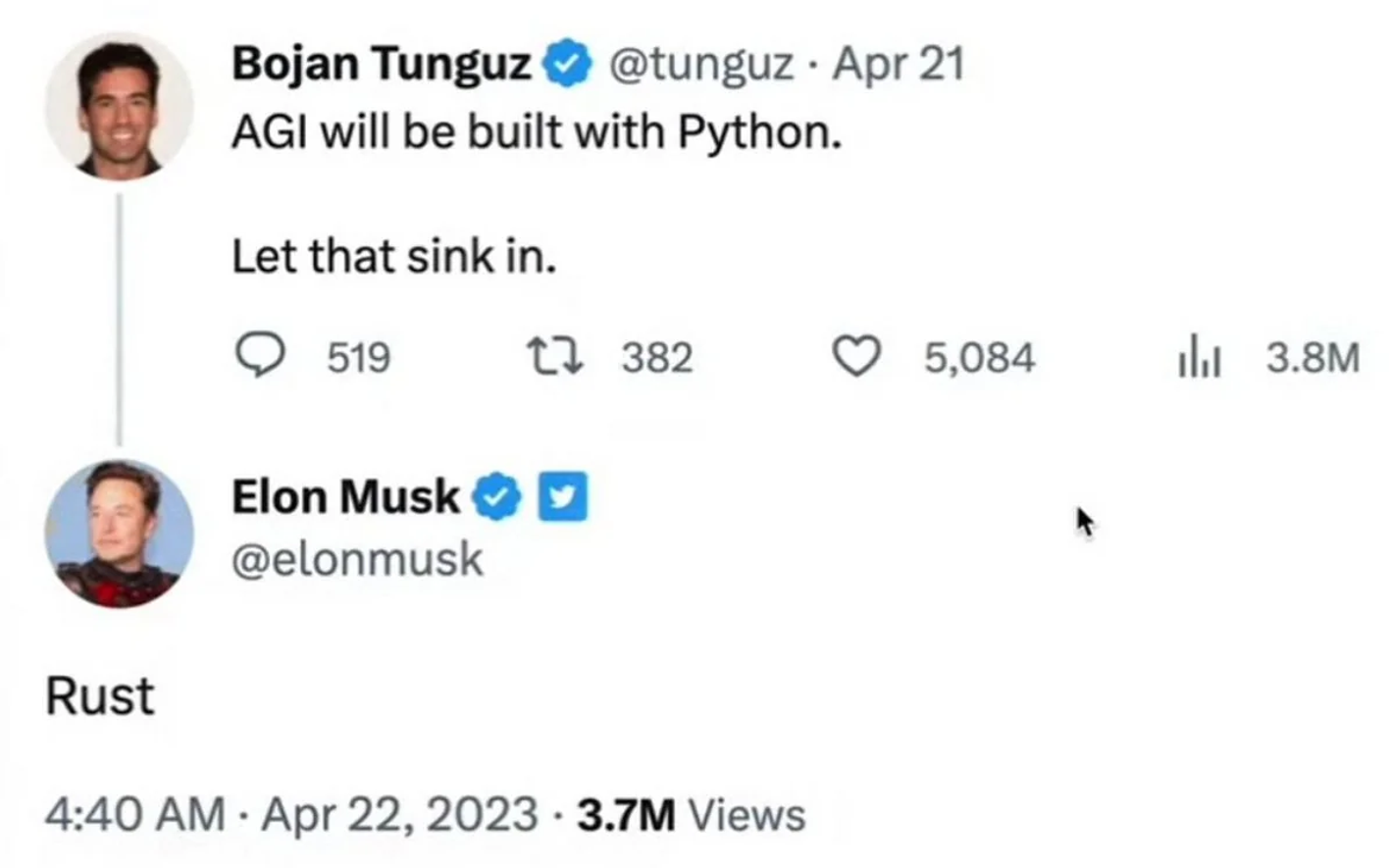 但除了 Rust,还有专为 AI 而生的 Mojo,它的定位是 Python 的易用性 + C 语言的性能,虽然 Mojo 目前还处于极其早期阶段,但这至少是个苗头:在 AI 主导的未来,说不定会有更 AI Native、LLM First 的语言设计出来。