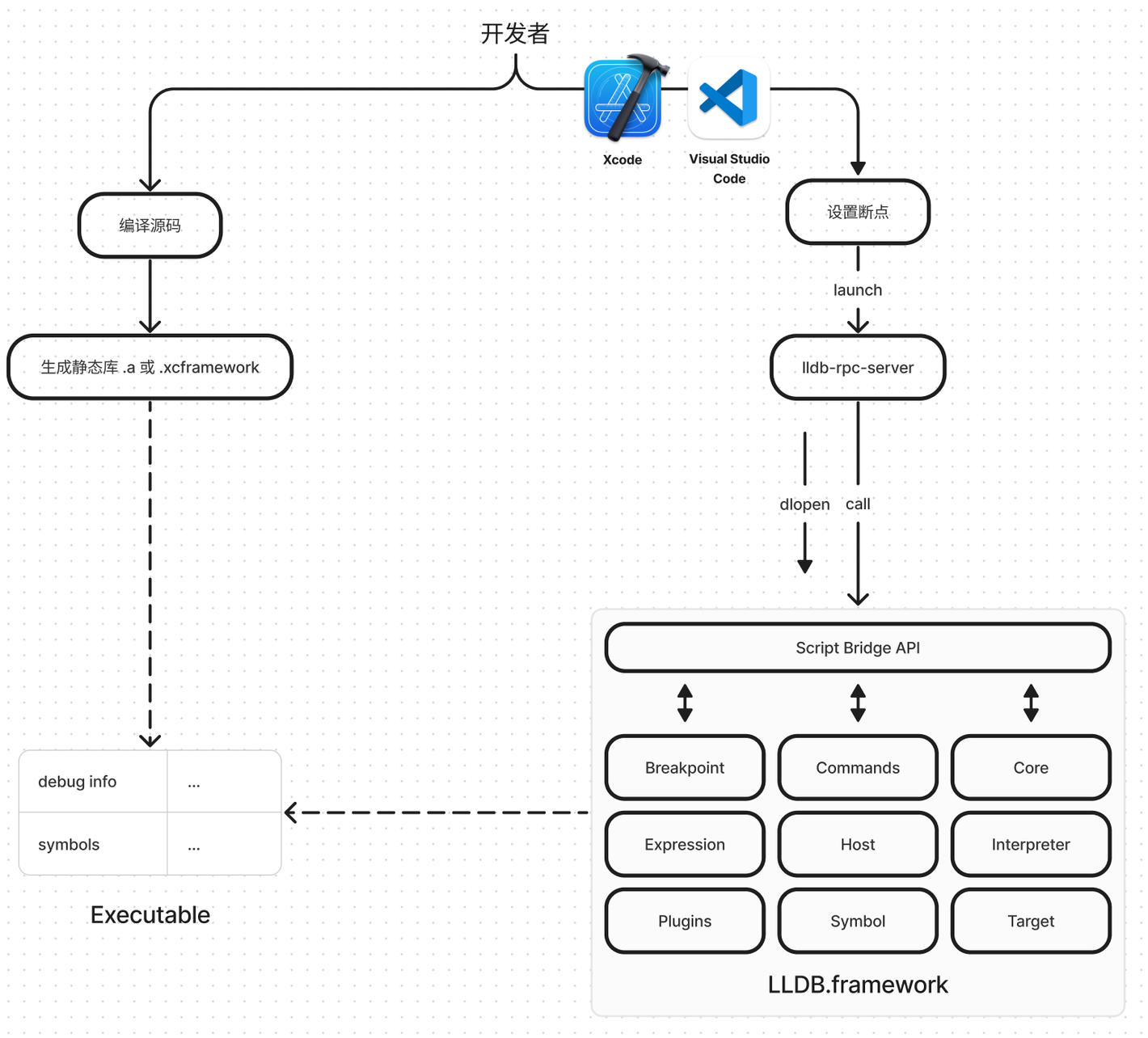 实现这一切的背后主要归功于 LLDB,调试原理: